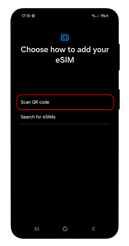 4) Dotknij Zeskanuj kod QR. Jeśli nie jest to możliwe, udostępnij go innemu urządzeniu lub wydrukuj.