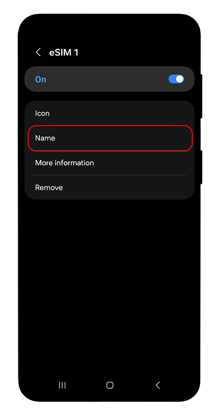 9) Dotknij Nazwa, aby zmienić nazwę swojej karty eSIM